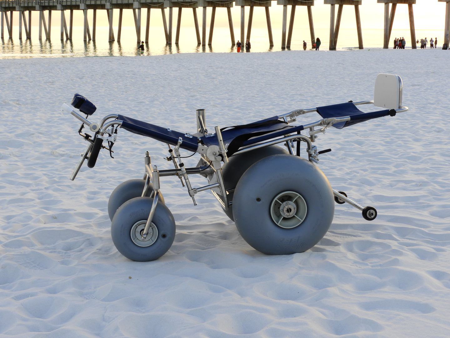 The DeBug ® Wheelchair is a premium design that will make Beach Day everyone's favorite day! The DeBug® Beach Wheelchair has lap belts, neck brace if needed. It is a higher quality product, easier to move & transport with quick release pin. Lower Height & Removable arms allows no lifting, slide in. The Footrest adjustable. This unit superb of course moves through soft sand. Fits through any ADA doorway.